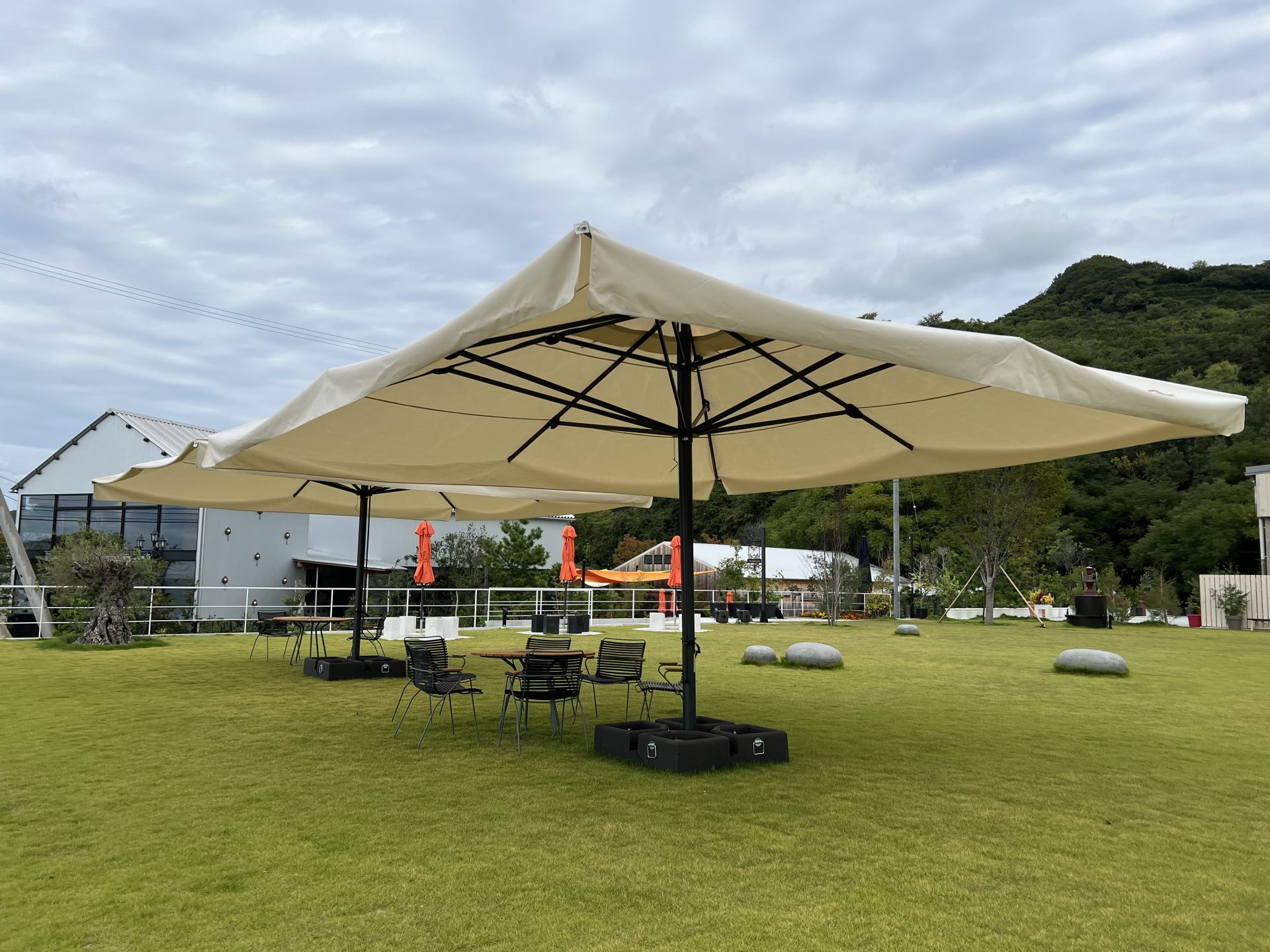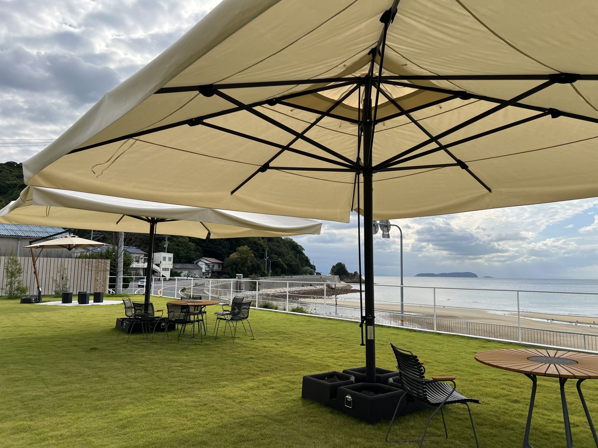 「海辺の珈琲研究所 豆豆豆」様に大型パラソルを設置頂きました