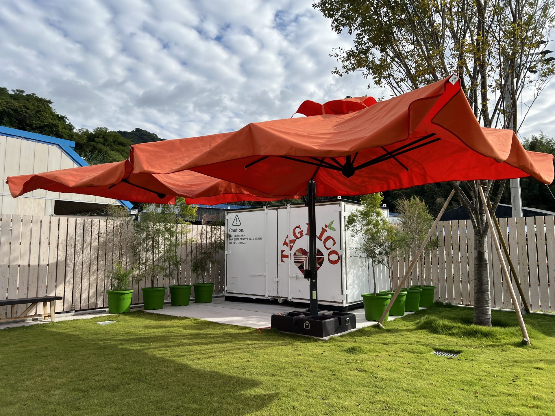 ガーデンエリアは超大型パラソルを中心としたくつろぎのスペースです。