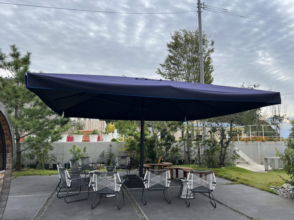 「海辺の珈琲研究所 豆豆豆」様に大型パラソルを設置頂きました